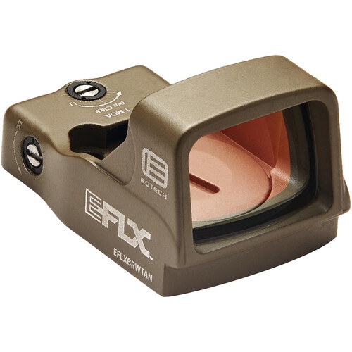 The new EFLX Mini Reflex Sight is EOTECH’s first venture into reflex technology optics. Ideal for professional use, hunting, home defense, and more, the EFLX can be used on a variety of platforms. Designed for pistol use, the EFLX base is configured to the Leupold Delta Point Pro footprint and will adapt to appropriately milled slides or onto a rear dovetail mounting adapter. The EFLX is also ideal as a 1X solution on rifles with magnified optics. Its durable, heavy duty aluminum housing provides a large, square viewing window, similar in shape to EOTECH’s HWS, that makes the 3 or 6 MOA aiming dot easy and quick to find. A top load, single 2032 battery provides roughly 20,000* hours of run time.